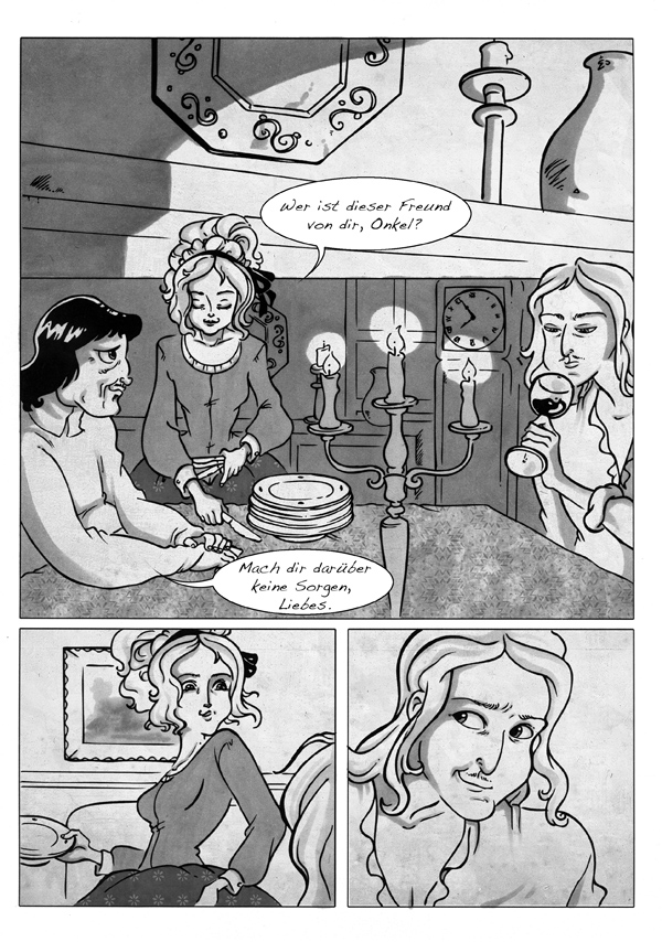 She knows she has many chances because of her pretty face but never the less she falls in love with the poor painter Godfrey Schalken. Though she has grown up in an artistic environment (her uncle is a renowned painter), she likes to see things realistically. Given that her parents are dead, she lives with her uncle who has no children of his own and he looks after her. She has the reputation to talk a lot.