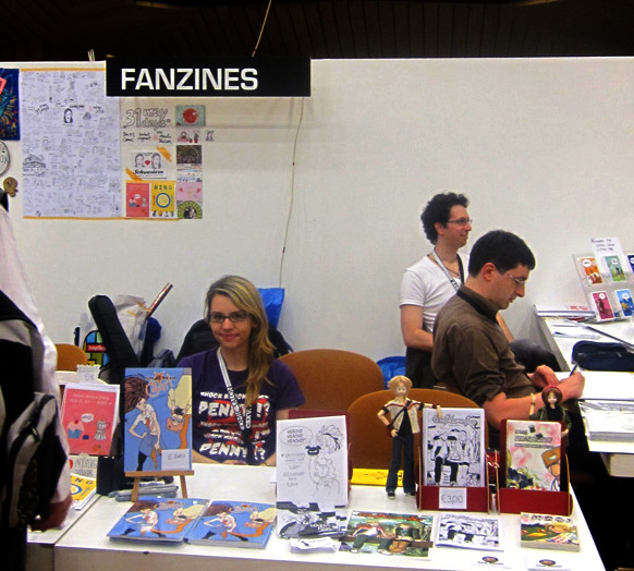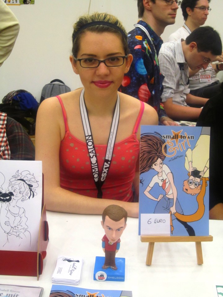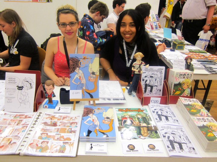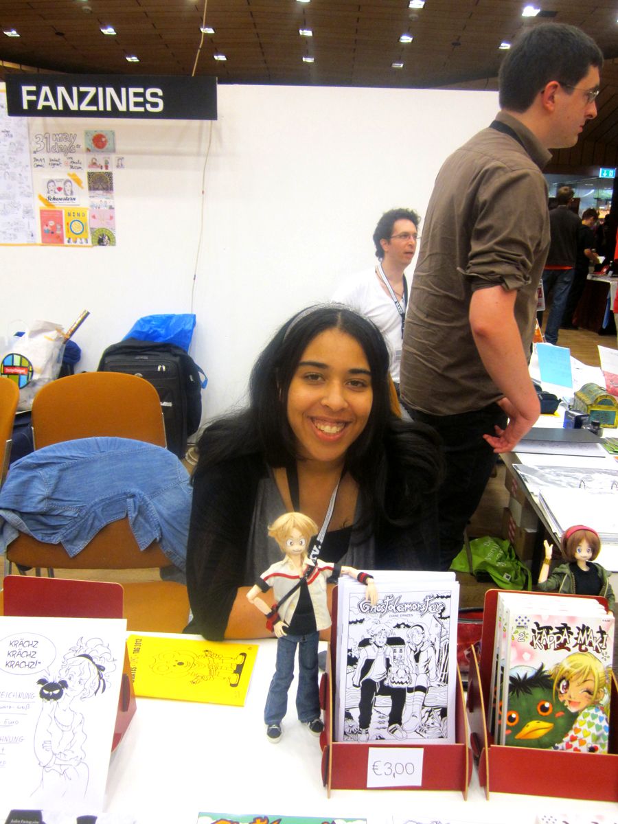 Diane “Yamatoking” Ernzen, wie immer hart arbeitend, an unserem Stand. Sie verkaufte die ersten Kapitel ihres Comics “Gostdemonster”.